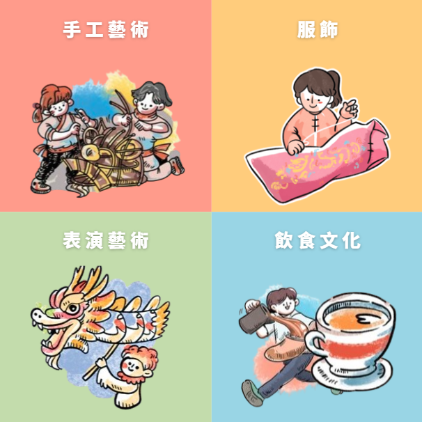 茶道、港式奶茶、吹糖、糖畫、茶粿、灰水糭等